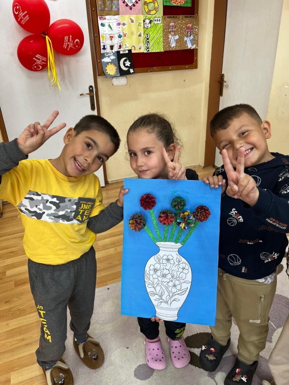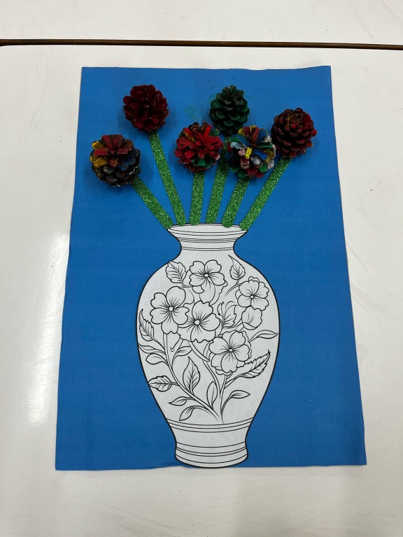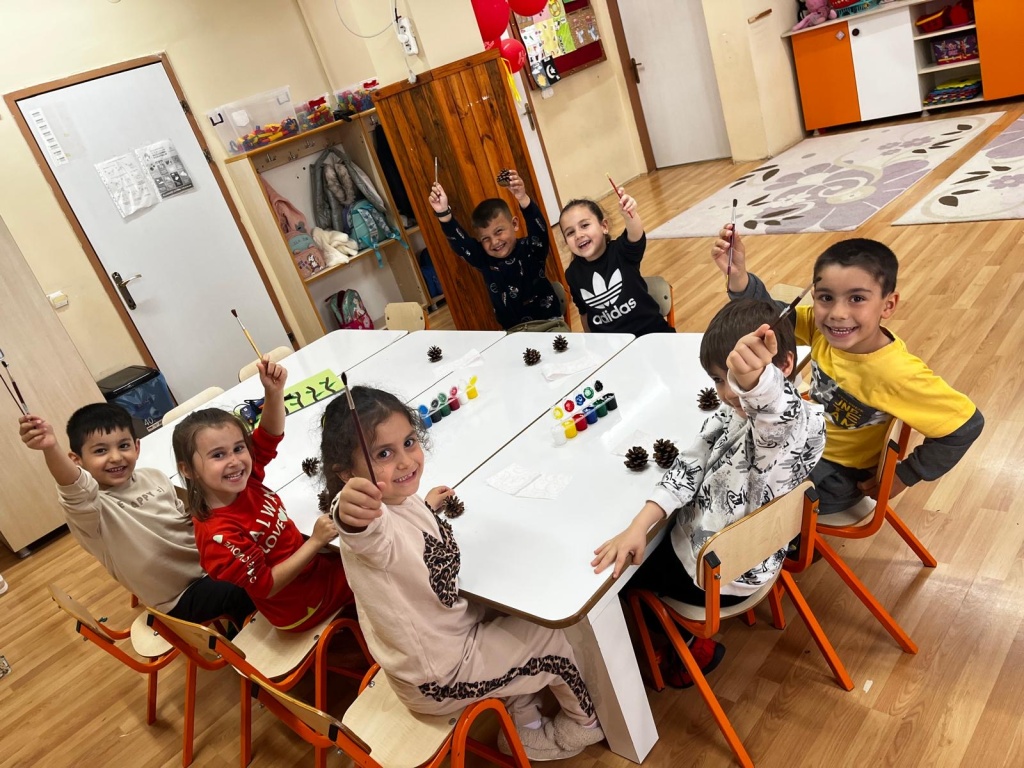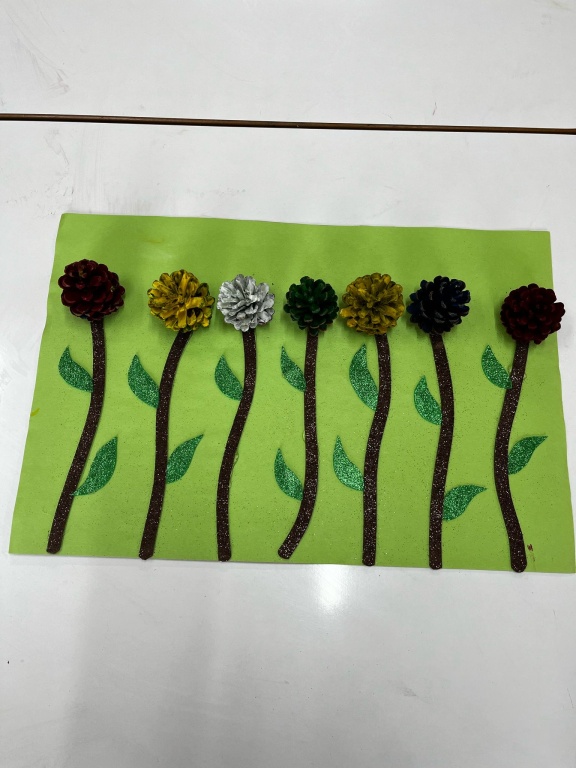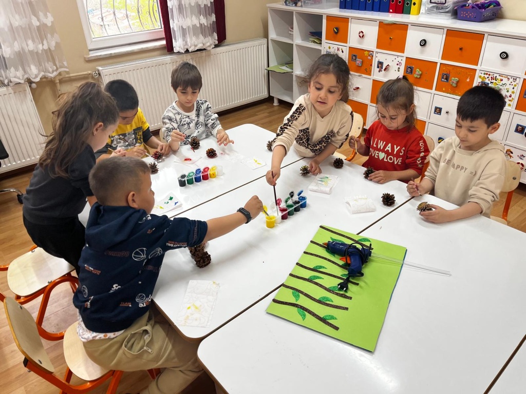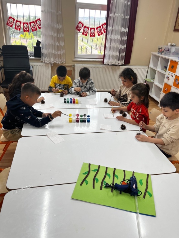 Gülen yüzler sınıfı dökülen kozalakları boyayarak sanatsal bir çalışma oluşturdularYapılan çalışmalar okulumuzda oluşturulan agro kütüphaneye kazandırılmıştır